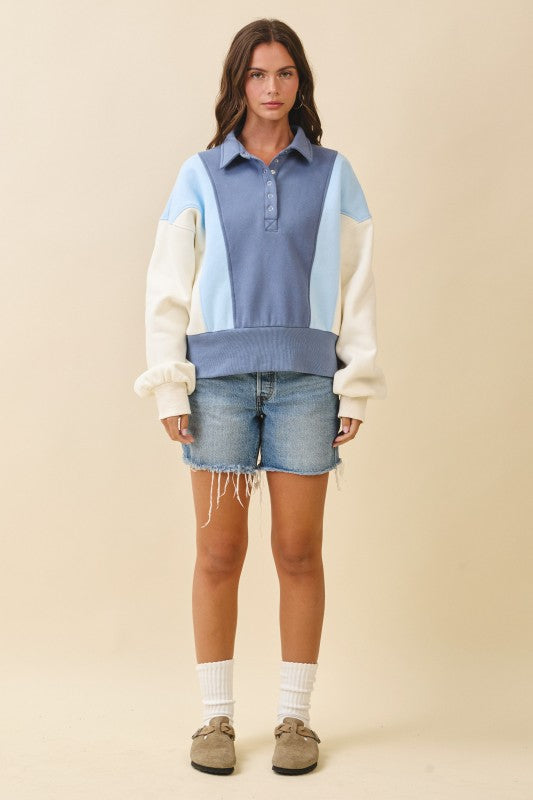 Collared Colorblock Henley Pullover Sweatshirt